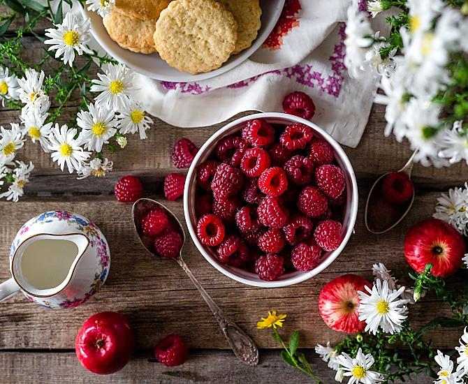 - Produkty z własnego gospodarstwa na śniadanie: speck, jajka, dżemy, syrop, herbaty ziołowe, przyprawy ziołowe, pieczywo, świeże warzywa sezonowe, świeże owoce sezonowe
