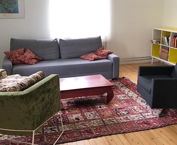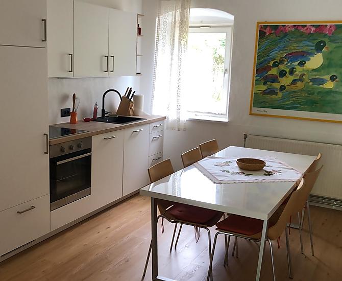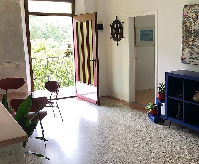 Mieszkanie wakacyjne zostało odnowione w stylu antycznym i urządzone w nowoczesnym stylu. Ma stare drewniane i lastrykowe podłogi i składa się z części wejściowej z częścią wypoczynkową, salonu, kuchni, łazienki i dwóch sypialni.