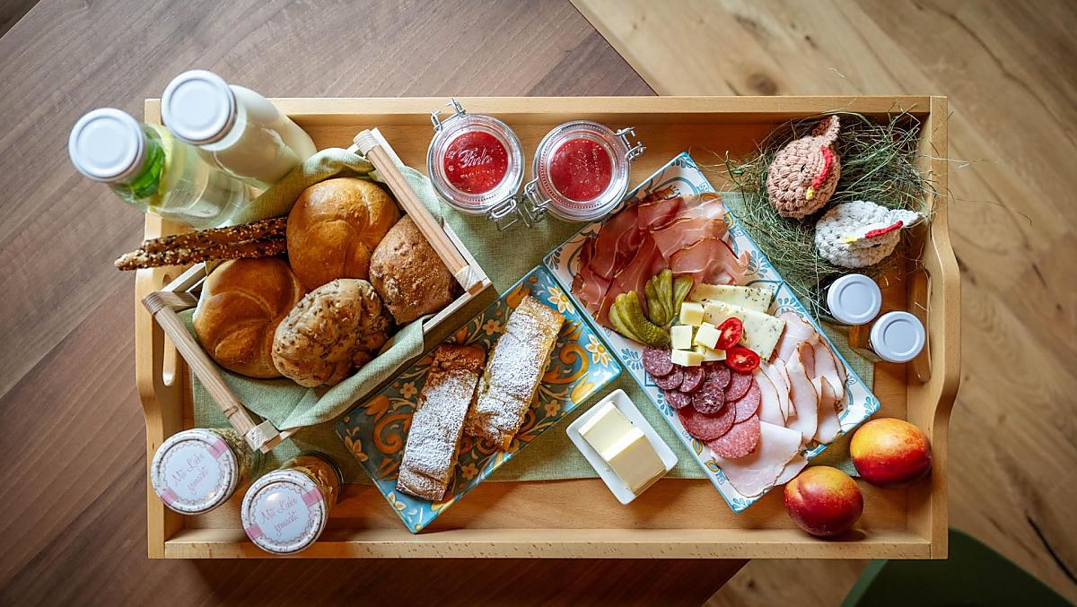 - Produkty z własnego gospodarstwa na śniadanie: mleka, jajka, dżemy, syrop, pieczywo