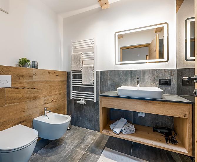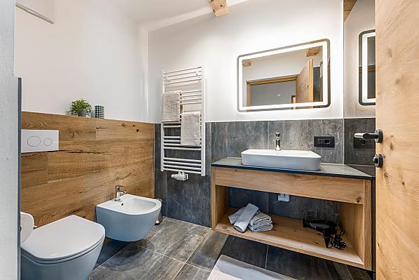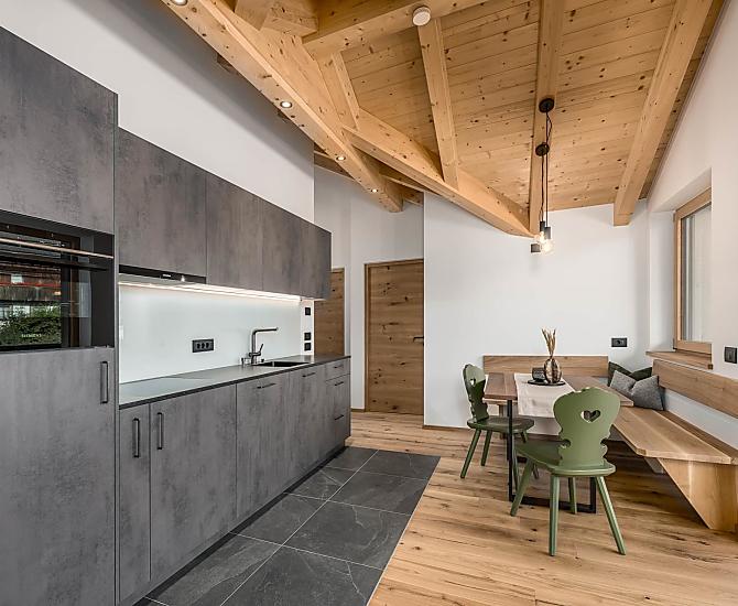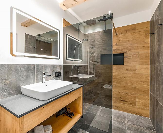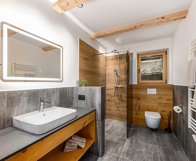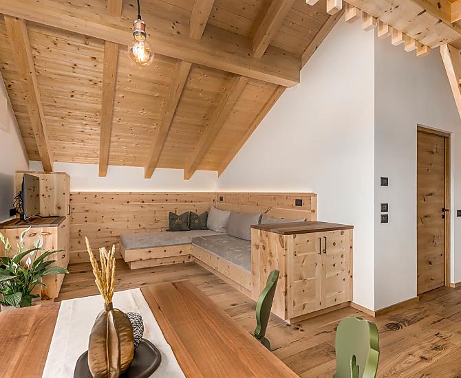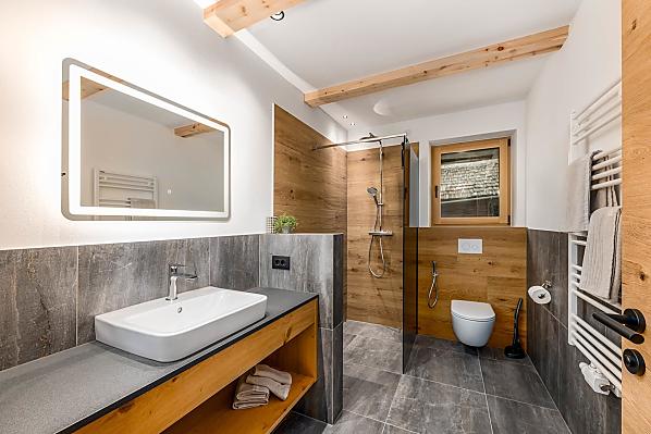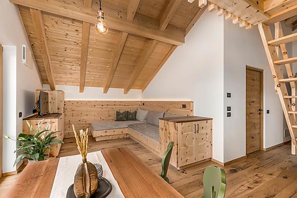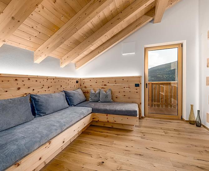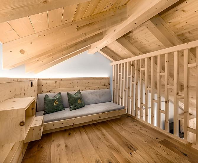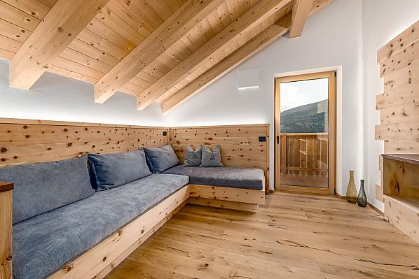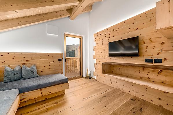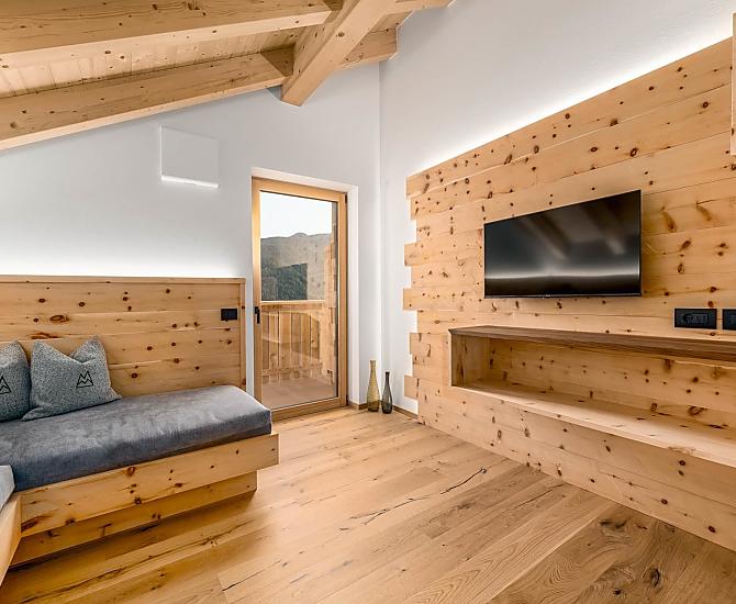 Nowo wybudowane gospodarstwo górskie (stare budynki pochodziły z XVII wieku) na południowo-zachodnim zboczu Kronplatzu, z zapierającym dech w piersiach widokiem na Dolomity.