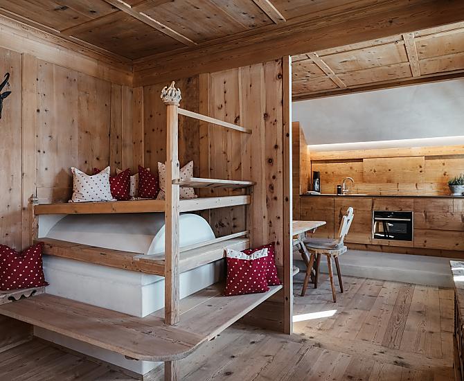 Miejsce, gdzie czas stoi w miejscu, a dusza moze odetchnac... Po najbardziej slonecznej stronie, w urokliwej oazie spokoju, zaledwie kilka minut spacerem od centrum Badii, dumnie stoi jeden z najstarszych domów wakacyjnych w Val Badia, przesiakniety historia. XVI-wieczny dworek, który w 2021 roku stal sie gospodarstwem agroturystycznym. Pod dawnymi sklepieniami, miedzy grubymi, recznie rysowanymi scianami i romantycznymi oknami z widokiem na Dolomity czekaja na Ciebie ponadczasowe wakacje.