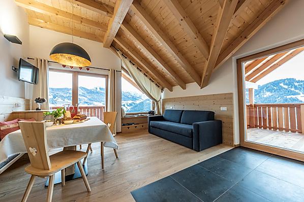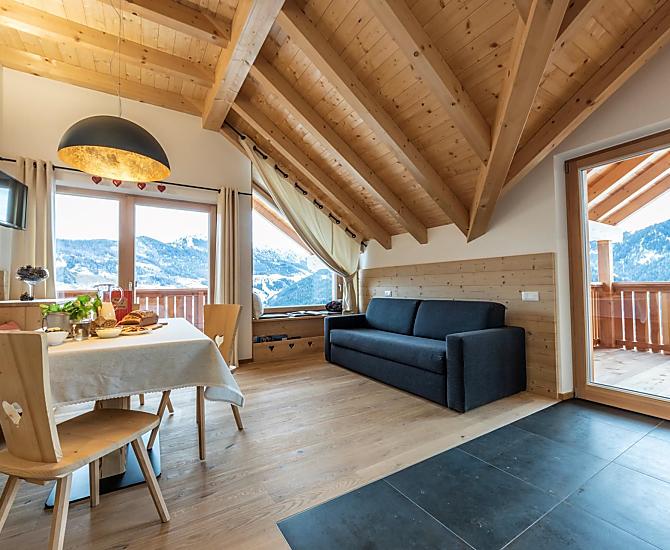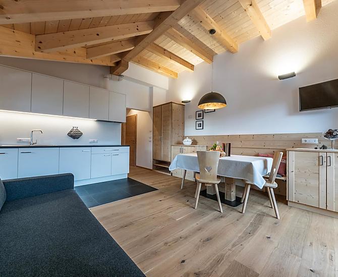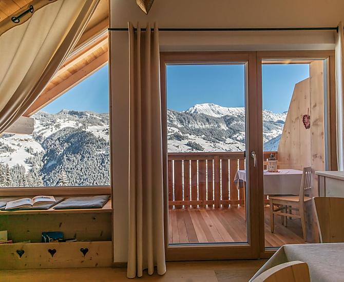 Znajduje się on w spokojnej okolicy, w samym sercu natury. Ogród, stajnia, rodzina, zwierzęta... na farmie jest wiele do zrobienia i każdy znajdzie coś dla siebie. Zapraszamy do pomocy! Wieczorem, po udoju, podczas gdy dzieci bawią się na własnym placu zabaw, mamy czas, aby cieszyć się z Tobą widokiem: na Heiligkreuzkofel, Rit, Pares Group, Conturines i La Val, wioskę po drugiej stronie doliny. Nasza farma - otoczona panoramicznymi widokami - po prostu zapiera dech w piersiach. Chcielibyśmy pozwolić Ci doświadczyć tego piękna.