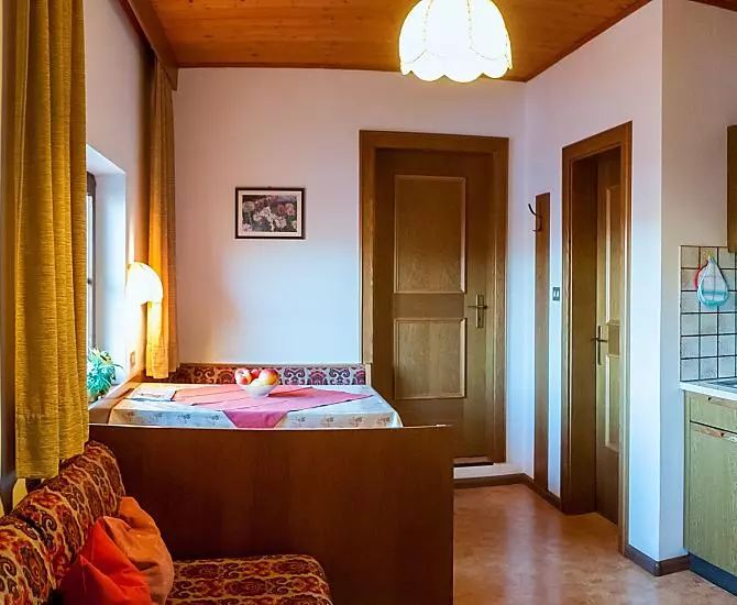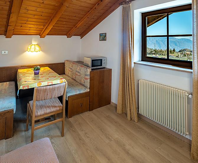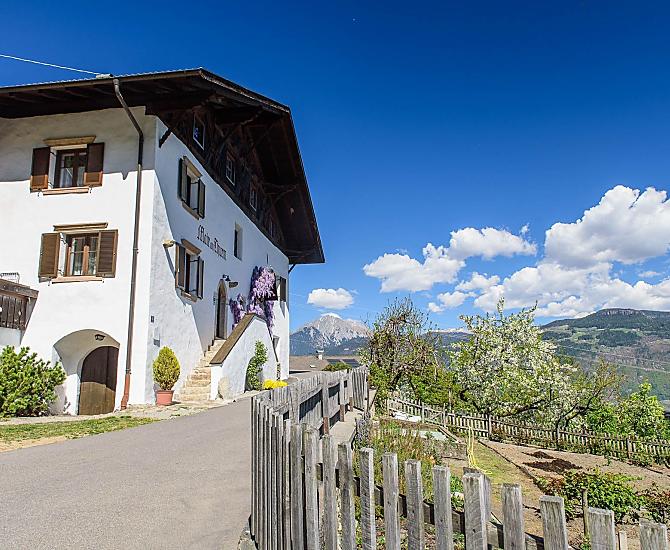 Unser renovierter, denkmalgeschützter Bauernhof liegt inmitten von Obstwiesen und Kastanienhainen in einer ruhigen und sonnigen Gegend auf 650 Metern Meereshöhe in Lana/Völlan. Ihre stilvoll eingerichtete Ferienwohnung finden Sie in unserem renovierten, denkmalgeschützten Haus. Die himmlische Ruhe, der herrliche Ausblick auf der Terrasse wird auch Sie begeistern. Hier ist jede Jahreszeit ein Erlebnis: das Apfelblütenmeer im zeitigen Frühling, der strahlende Sommer, der goldene Herbst zur Obsternte. Im Garten finden Sie Grill, Schaukel, Tischtennis und Sandkasten für unsere kleinen Gäste. Der große Parkplatz lässt keine Wünsche offen und bietet für jeden Wagen genügend Stellfläche.