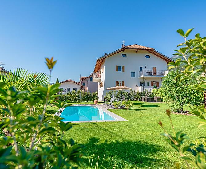 Gospodarstwo polozone jest posród wlasnych sadów i winnic w spokojnej wiosce Missian w miejscowosci Eppan na szlaku winiarskim. Gospodarstwo otoczone jest zamkami i palacami i jest idealnym punktem wyjscia dla pieszych wycieczek. Domek gospodarczy jest przykladem idealnego polaczenia starych murów i najwyzszego komfortu zycia. Trzy przestronne, bardzo wygodne i uroczo urzadzone mieszkania wakacyjne, które zostaly rozbudowane w 2013 roku, oferuja Panstwu mozliwosc spedzenia relaksujacego urlopu w pojedynke, jako para, z cala rodzina lub z przyjaciólmi. Oprócz balkonu maja Panstwo do dyspozycji równiez trawnik do opalania i lezaki oraz basen. Dzieci moga bawic sie w piaskownicy i na placu zabaw. Przed domem znajduje sie ogródek warzywny i ziolowy.