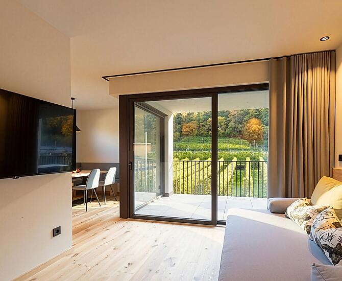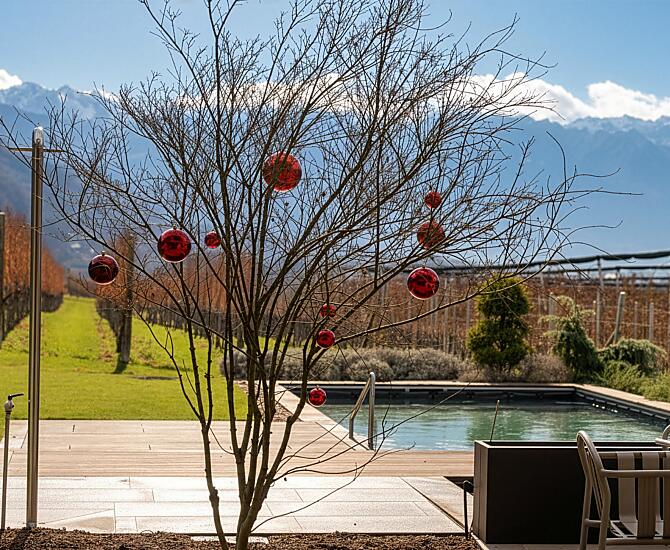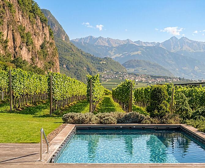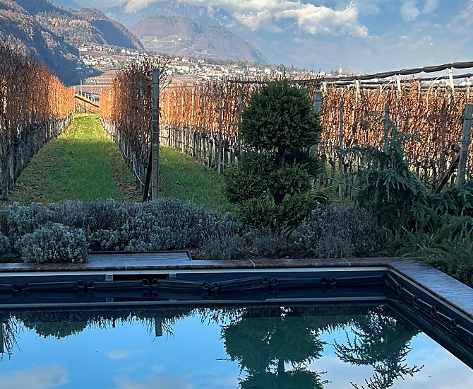Nasze gospodarstwo położone jest w urokliwej miejscowości Unterrain w Eppan, wśród winnic, sadów jabłkowych i dumnych zamków okolicy. Zaledwie kilka minut od Bolzano znajdą się Państwo tu pośrodku natury, a jednocześnie blisko wszelkich wydarzeń. To miejsce, które daje spokój i swobodę – a my witamy Państwa z otwartymi ramionami, uśmiechem i wieloma drobnymi chwilami szczęścia. Nasz biobasen harmonijnie wpisuje się w otoczenie, jest przyjazny dla środowiska i całkowicie pozbawiony chemii. Wszystko zostało pomyślane tak, aby zapewnić Państwu dobre samopoczucie.