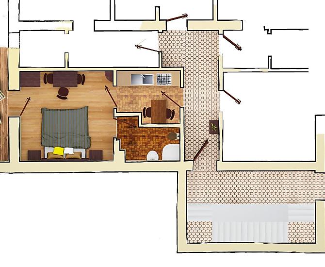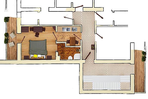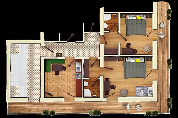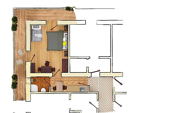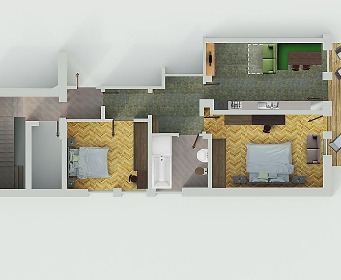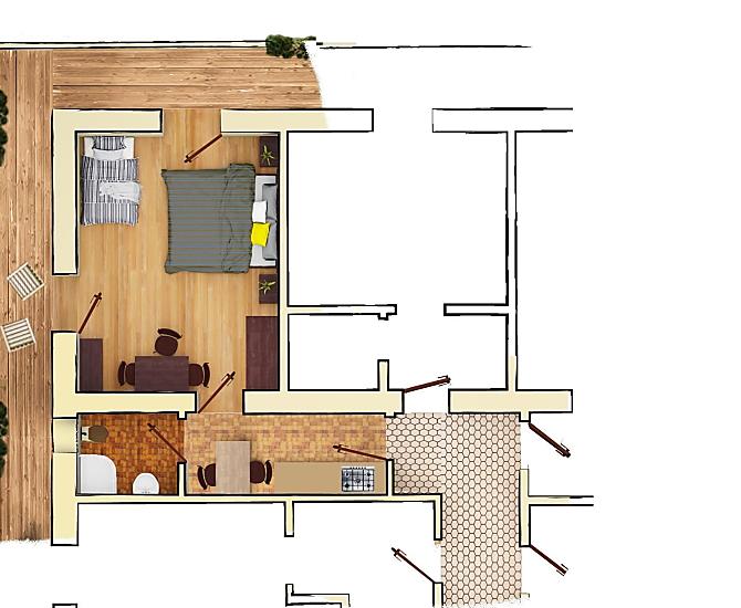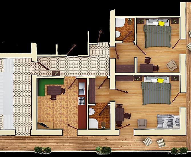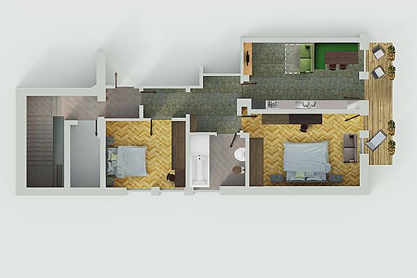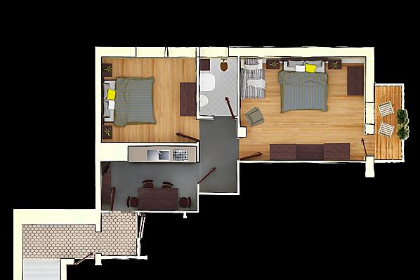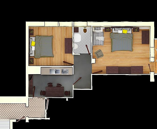 5 apartamenty: 2 osób, 3 osób, 4-5 osób, 5-7 osób