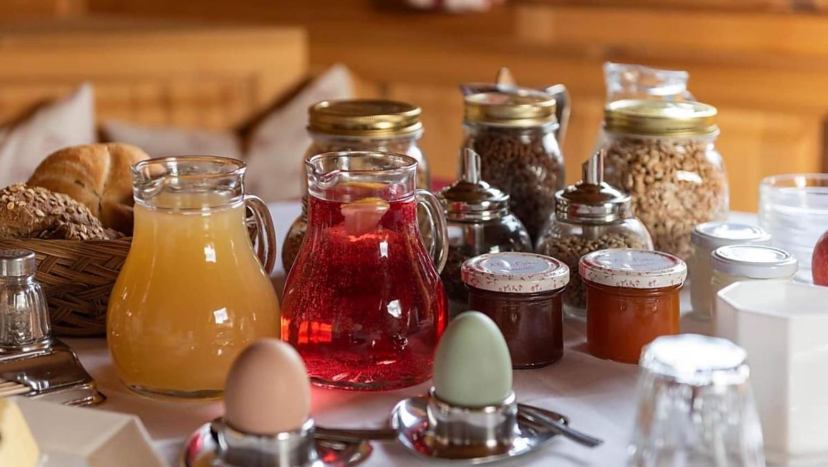 - Produkty z własnego gospodarstwa na śniadanie: jogurt, speck, wołowina wędzona, wędliny, jajka, dżemy, syrop, soki owocowe, suszone owoce, przetwory, herbaty ziołowe, przyprawy ziołowe, chleb, pieczywo, świeże warzywa sezonowe, świeże owoce sezonowe