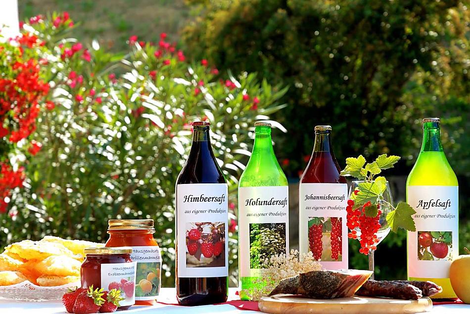 - Produkty z własnego gospodarstwa na śniadanie: mleka, speck, wędliny, jajka, dżemy, syrop, soki owocowe, przyprawy ziołowe, pieczywo, świeże warzywa sezonowe, świeże owoce sezonowe