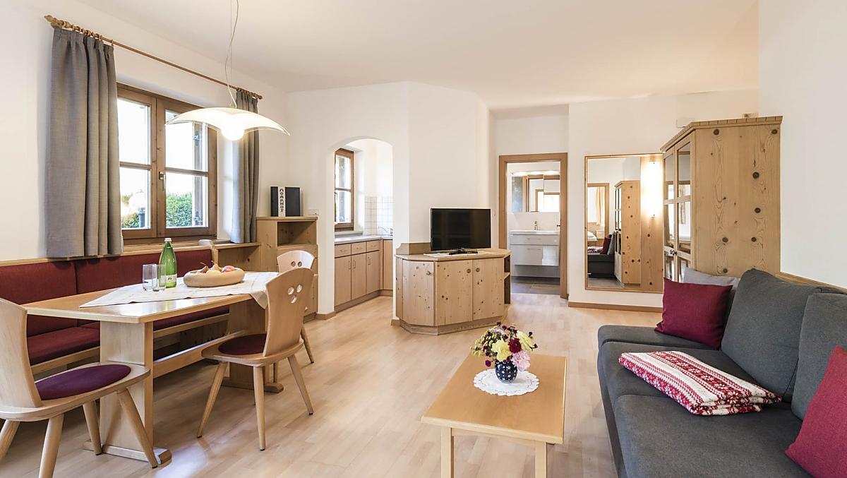 Na wysokości 586 m n.p.m. leży mała wioska Albeins licząca ok. 720 mieszkańców, u wylotu z doliny Aferertal i niedaleko Brixen. Mała, ale piękna – zachował się charakter wsi i urokliwe uliczki, a część centrum wsi znajduje się pod ochroną. Nasze gospodarstwo, nowo wybudowane w 1986 r., położone jest w spokojnym miejscu, w otoczeniu rozległych sadów. Specjalizujemy się w uprawie jabłek, a od 1998 r. przyjmujemy również gości. Jesteśmy firmą czysto rodzinną, co oznacza, że zarówno gospodarstwo, jak i apartamenty są pod opieką wszystkich członków rodziny. Nasze gospodarstwo jest idealną bazą wypadową do różnych form aktywności w okolicy: urozmaicone wędrówki, wycieczki górskie i rowerowe, zwiedzanie wielu muzeów lub zimą narty, wędrówki na rakietach śnieżnych, narciarstwo biegowe i wiele innych.
