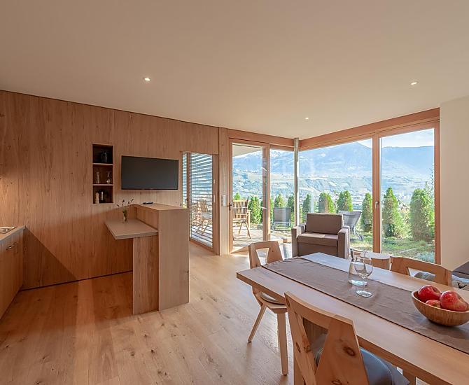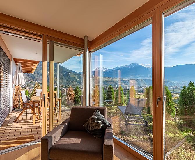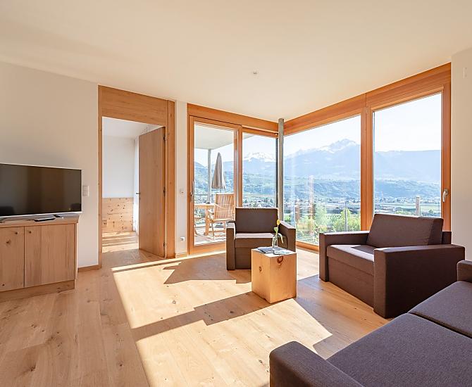 Hotel Moosbichlerhof jest polozony na slonecznym wzgórzu, posród wlasnych sadów, z wyjatkowym widokiem na Burggrafenamt. Przezyj relaksujace i urozmaicone wakacje na naszej farmie w jednym z najbardziej slonecznych miejsc w Marling: w nowych i przestronnych mieszkaniach wakacyjnych oraz w duzym, ogrzewanym energia sloneczna basenie z fantastycznym widokiem.