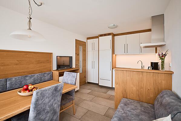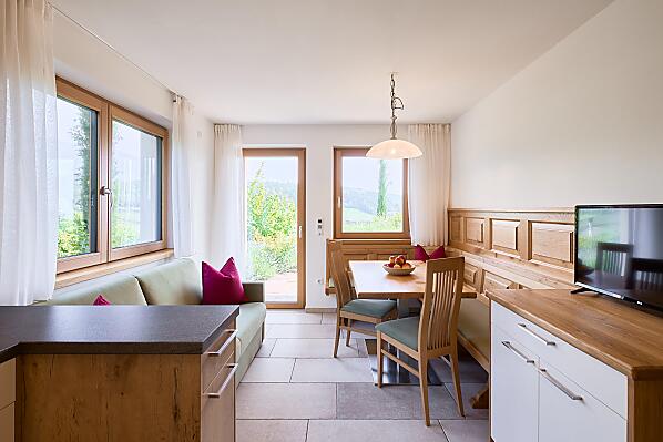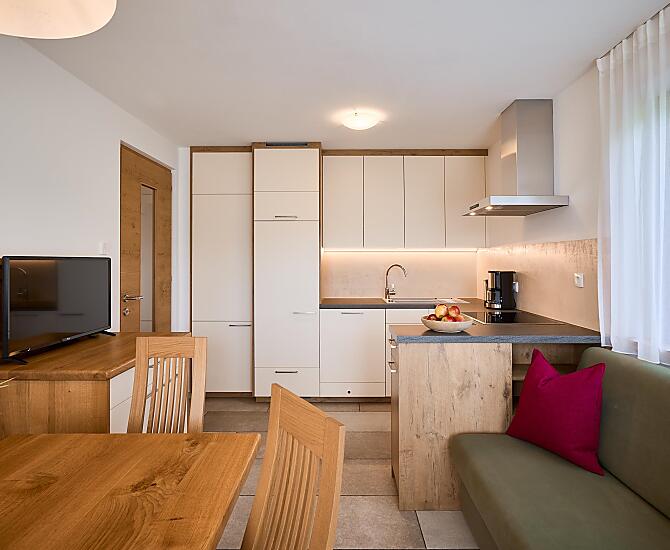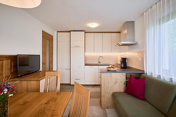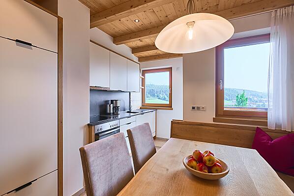Nasze gospodarstwo sadownicze Moser znajduje się w Schabs, niedaleko miasta Brixen. Gospodarstwo zostało przez nas przebudowane w 2015 roku na terenie dawnego "Mosergütl", należącego do hrabiów Wolkenstein i Rodenegg do 1810 roku. Powstały również trzy nowe, komfortowe mieszkania wakacyjne. Naturalne materiały, drewno i kamień, nadają mieszkaniom przyjemną atmosferę. Wiejskie otoczenie pośród łąk i lasów zachęca do relaksu i naładowania baterii.
