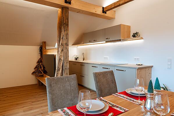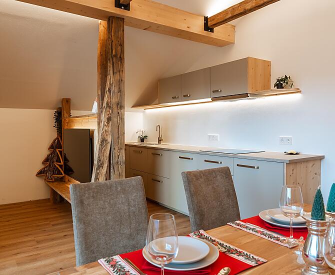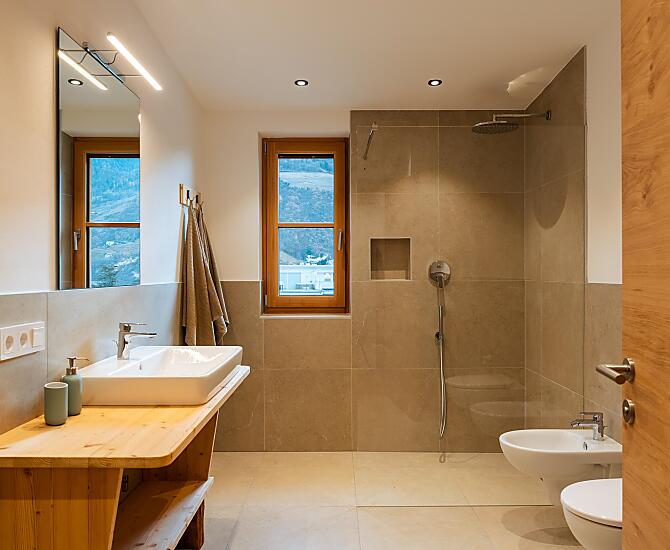 Trzy stylowo urządzone mieszkania wakacyjne oferują przestrzeń do wypoczynku i swobody. Czy to na słonecznym tarasie, czy we własnym ogrodzie – tutaj można się zrelaksować w spokojnym otoczeniu przyrody, nie rezygnując z zalet bliskości miasta. Największą atrakcją jest spektakularny widok na całą dolinę Etschtal.