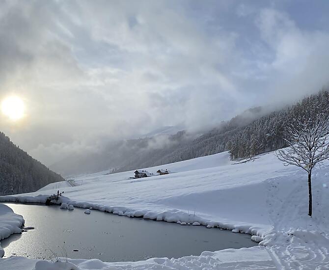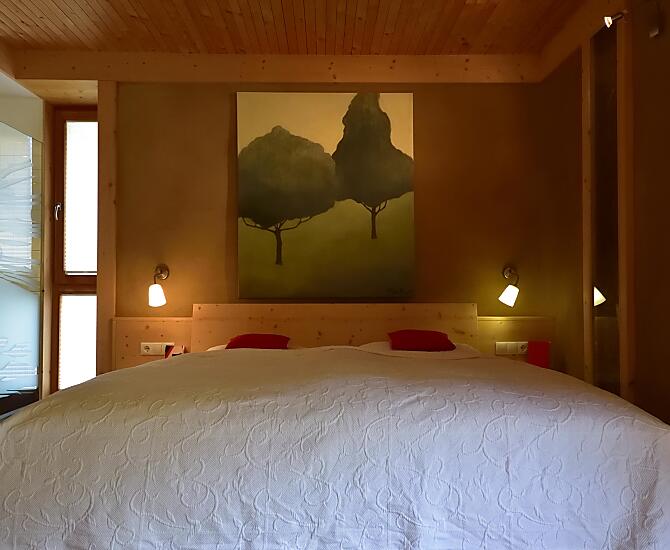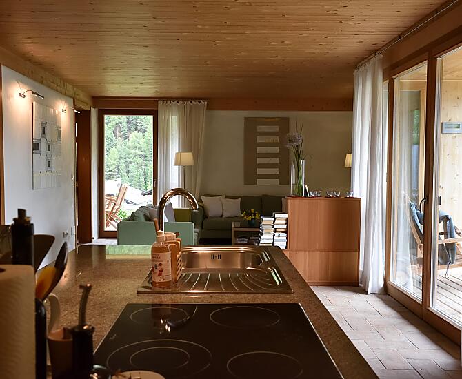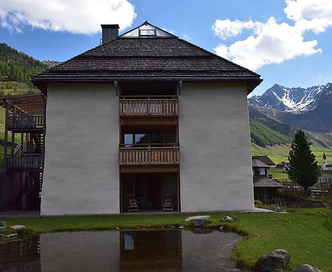 Nasze małe górskie gospodarstwo położone jest na wysokości 1850 m na południe od głównego grzbietu Alp. W naszym samowystarczalnym gospodarstwie hodujemy krowy, młode bydło, od czasu do czasu świnie, kury, kozy i różne małe zwierzęta. Produkowana żywność jest przeznaczona dla nas samych oraz dla naszych gości. Przydomowy ogród zapewnia warzywa i jagody. Rozległa uprawa, organiczne budownictwo, wszechobecne wrażenia bliskości natury, własna woda w gospodarstwie, cisza, niezakłócona egzystencja, to kamienie węgielne, które wyróżniają to miejsce. Oczywiste jest, że gospodarujemy ekologicznie, ale nie posiadamy odpowiedniego certyfikatu, ponieważ nasze gospodarstwo jest zbyt małe, a wymogi biurokratyczne i finansowe stanowią zbyt dużą przeszkodę.