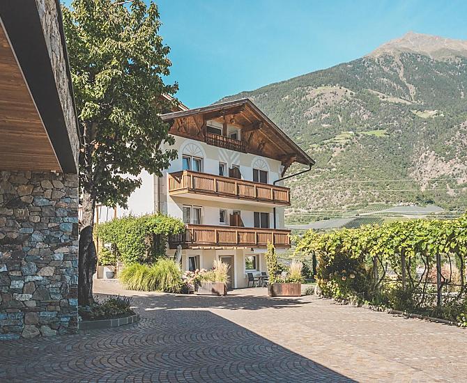 Niedermaierhof jest polozony w sercu doliny Vinschgau - spokojnej, otoczonej sadami, z okolica, która nie pozostawia nic do zyczenia: uzdrowisko Merano oddalone o 20 km, Park Narodowy Stilfser Joch, zamek Juval Reinholda Messnera, sródziemnomorski Sonnenberg o wyjatkowym klimacie i Waalwege, zamek Trauttmansdorff, jeden z najpiekniejszych ogrodów w Europie. Dzieki swojemu wyjatkowemu polozeniu na poludniowej stronie Alp, a jednoczesnie w otoczeniu najwyzszych i najbardziej imponujacych szczytów, dolina Vinschgau jest szczególnego rodzaju wyspa klimatyczna. Ten unikalny klimat sprawia, ze dolina jest rajskim ogrodem, w którym kwitnie prawie wszystko. Ale czym bylby rajski ogród bez slynnych jablek? W Niedermaierhof przez caly rok pracujemy w naszych sadach z miloscia do natury, pasja, starannoscia i niezbednym doswiadczeniem, produkujac wiele ton jablek. Jestesmy szczególnie dumni z naszego gospodarstwa ekologicznego i dobrej jakosci naszych owoców.