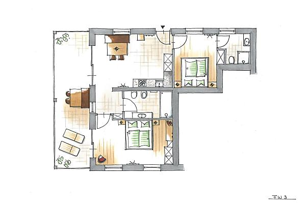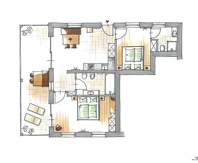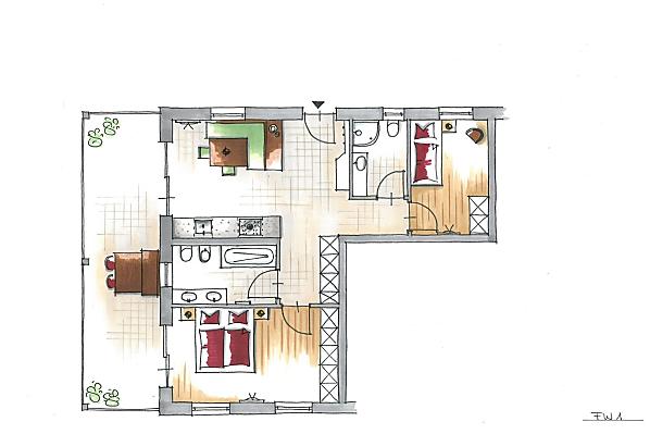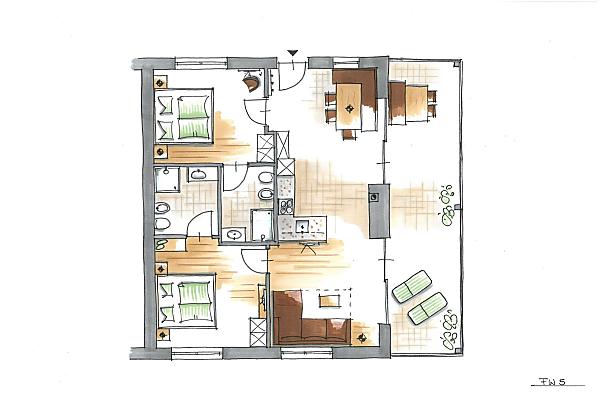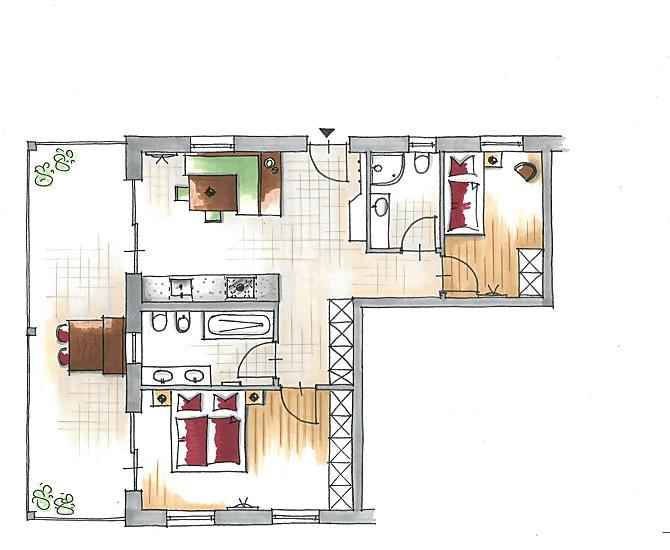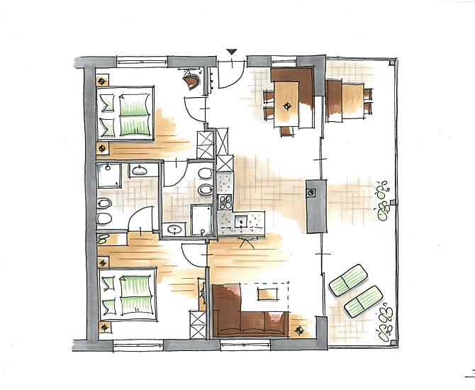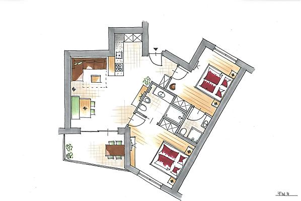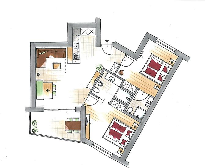 5 apartamenty: 2-3 osób, 2-4 osób, 2-6 osób