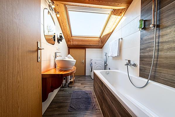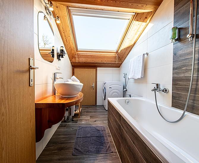 Wakacje w górskim gospodarstwie to coś wyjątkowego. Rano wystarczy jedno spojrzenie z panoramicznego mieszkania, aby poczuć, czym naprawdę jest natura. Jest tak cicho, że można usłyszeć bicie własnego serca. Podczas gdy Ty z niecierpliwością oczekujesz wschodu słońca, my mamy już pełne ręce roboty. Świeże bułeczki, pyszne jajka naszych szczęśliwych kur, słoik domowego dżemu i szklanka najlepszego miodu pszczelego czekają na Ciebie. We wsi znajduje się dobry sklep na rogu, a w pobliżu można znaleźć dobre restauracje. Dzieci bawią się i uczą jednocześnie, ponieważ nie potrzebują wyidealizowanych wakacji, ale takich, które zaczynają się w kurniku, a kończą w stodole. Mamy wiele małych zwierząt do karmienia, opieki i miłości – nie tylko do malowania.