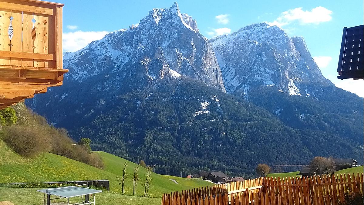 Nasze gospodarstwo położone jest na wysokości ok. 1275 m n.p.m. pośród łąk i lasów, z dala od głównej drogi i bardzo cicho, ze wspaniałym widokiem na Schlern, naszą lokalną górę. W ciągu ostatnich 20 lat gospodarstwo było wielokrotnie remontowane. Wynajmujemy trzy odnowione, przytulne mieszkania wakacyjne z widokiem na Schlern.