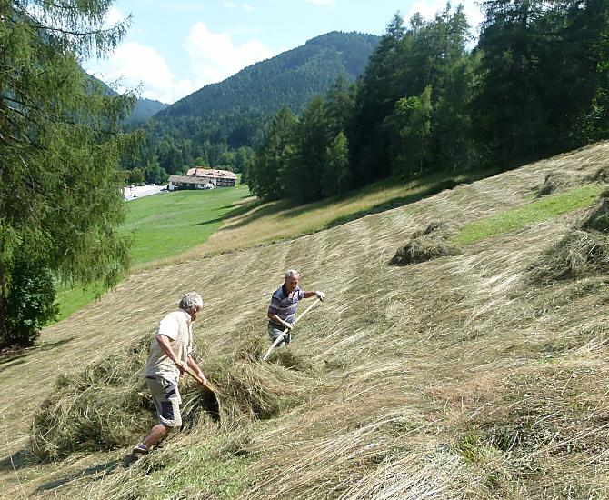 Nasze górskie gospodarstwo polozone jest na wysokosci 1000 m, z dala od zgielku, w idyllicznym krajobrazie wiejskim i tradycyjnym krajobrazie kulturowym Parku Przyrody Trudner Horn, gdzie równina poludniowotyrolska spotyka sie z dolina Fleimstal/Val di Fiemme w Trentino. Nasze gospodarstwo polozone jest wsród lak i lasów, tuz przy szlaku rowerowym i pieszym dawnej kolei Fleimstal, tuz pod turystyczna miejscowoscia Truden w parku krajobrazowym. Nasze gospodarstwo z wielowiekowa tradycja jest w naszej rodzinie od wielu pokolen. Zycie w harmonii z natura, w sposób zrównowazony, z poszanowaniem zasobów i przyszlych pokolen jest nasza zasada przewodnia. Rolnictwo to nasza misja i nasza przyjemnosc. Harmonia miedzy przyroda, ludzmi i zwierzetami wymaga szacunku i odpowiedzialnosci. Staranna gospodarka lakami i lasami oraz pasterstwo przyczyniaja sie do powstania unikalnego, bogatego w gatunki krajobrazu naszego gospodarstwa.