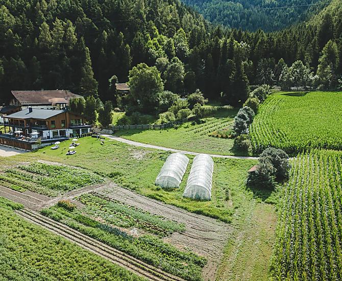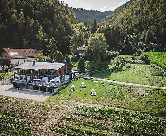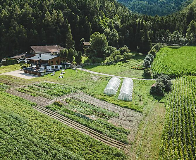 Niezakłócony widok na góry i dolinę. Obok, ciekawska krowa wygląda przez okno. A dookoła wszystko opowiada o życiu zgodnym z naturą. Po prostu posłuchaj opowieści. O siewie, uprawie i zbiorach. O tym, co dobre i prawdziwe. O planach wypraw na szczyty i kulinarnych ekscesach. A potem po prostu weź kęs i ciesz się. Perntalhof w Gais to coś więcej niż tylko miejsce na wakacje z ekskluzywnymi mieszkaniami wakacyjnymi. I zdecydowanie więcej niż klasyczna południowotyrolska farma z mentalnością "od pola do stołu". Tu chodzi o dobre życie. O ogromny ogród warzywny, autentyczność i cholernie smaczne jedzenie.