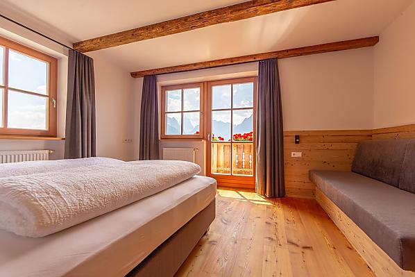 Jesteśmy gospodarstwem mlecznym z 8 krowami i młodym bydłem (cielętami). Nasze mleko jest codziennie przywożone do doliny przez starszego rolnika Toniego, gdzie jest przetwarzane w serowarni Sexten. Lasy należące do gospodarstwa są również bliskie naszym sercom i pielęgnowane z należytą starannością oraz pasją.
