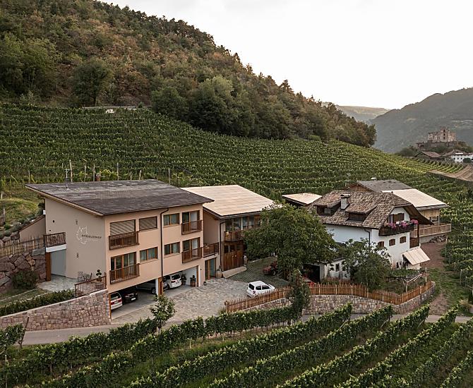 Jak miło, że nas znalazłeś! Nasze gospodarstwo położone jest w słonecznej i spokojnej okolicy, na wysokości 654 metrów nad poziomem morza, wysoko nad stolicą prowincji Bolzano. Tutaj, pomiędzy bujnymi winnicami i szerokimi modrzewiowymi łąkami Salten, znajduje się Twój dom wakacyjny, z naciskiem na "dom". Ponieważ właśnie to uczucie chcemy Ci przekazać podczas wakacji w Południowym Tyrolu: poczuj się jak w domu, całkowicie swobodnie od pierwszej chwili. W znajomym otoczeniu farmy, w komfortowych mieszkaniach, ze wszystkimi możliwościami relaksu, odkrywania i cieszenia się tuż za progiem.