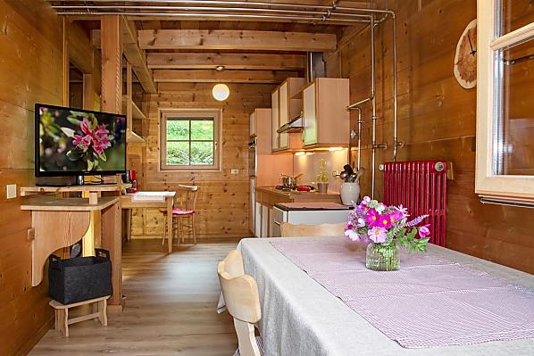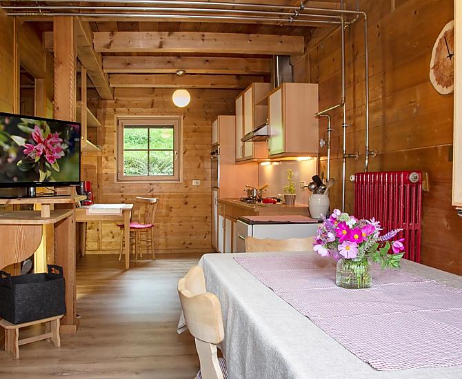 Dom wakacyjny, który znajduje się 50 m obok naszego gospodarstwa, został przebudowany z dawnego młyna wodnego i jest do wynajęcia całkowicie na wyłączność. Może pomieścić dwóch dorosłych i do trójki dzieci. Na zewnątrz czeka dużo miejsca wokół domu, a grill w ogrodzie mogą Państwo rozpalić drewnem z naszego lasu.