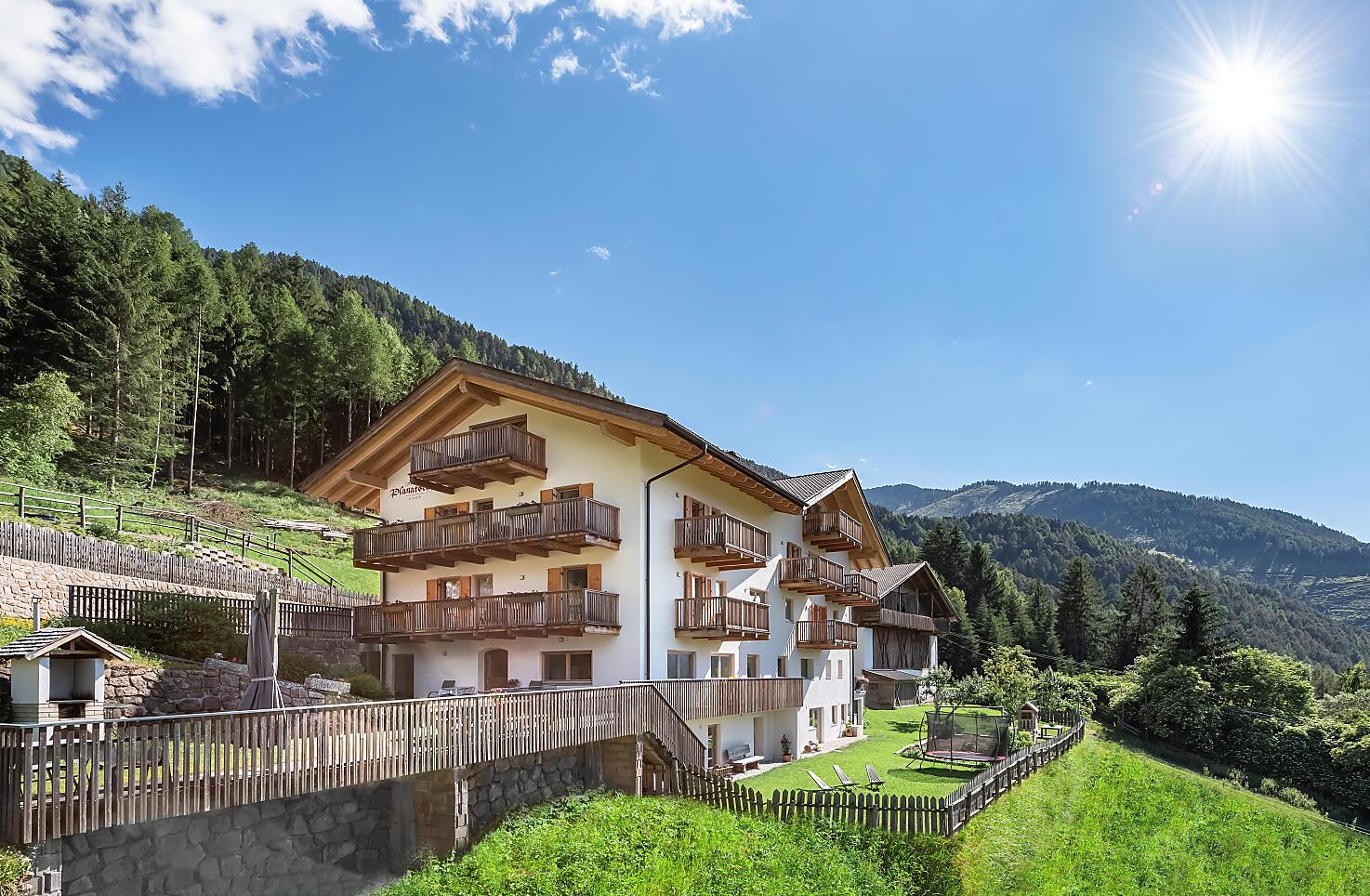 Nasze gospodarstwo polozone jest w niezwykle spokojnym miejscu na skraju lasu. Zapraszamy na pobyt w gospodarstwie w ciszy i spokoju w rodzinnej atmosferze. Oferuje rozlegle panoramiczne widoki na miejscowosci St. Peter, St. Jakob, St. Valentin, doline Eisack i Dolomity. Jest to idealny punkt wyjscia do licznych wedrówek. Urlop w Dolomitach jest szczególnie polecany dla rodzin! Dzieci moga swobodnie poruszac sie w bezpiecznym otoczeniu Planatschhof i przezywac edukacyjne przygody. Czy to obcowanie z wieloma zwierzetami gospodarskimi, czy tez wedrówki po sasiednim lesie - nuda jest obcym pojeciem podczas urlopu w Dolomitach! Rodzice moga cieszyc sie alpejska przyroda i odpoczac od codziennego stresu.