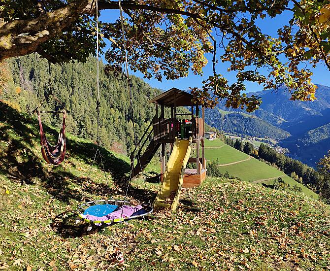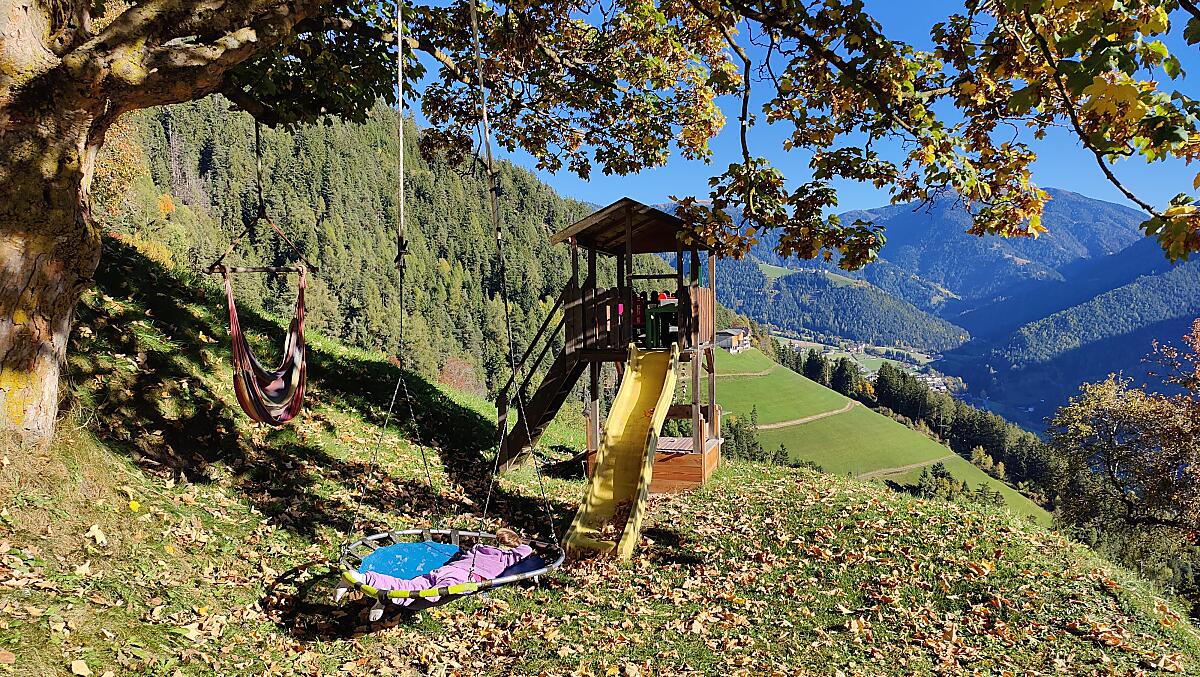 Przyjazne dzieciom gospodarstwo górskie w spokojnym i slonecznym miejscu na wysokosci 1200 m z widokiem na doline. Duzo miejsca na zewnatrz, gdzie dzieci moga sie bawic i szalec. Dla doroslych jest wiele zakatków, w których mozna sie zrelaksowac i odpoczac. To prawdziwe bogactwo, w którym cala rodzina moze poczuc sie swobodnie.