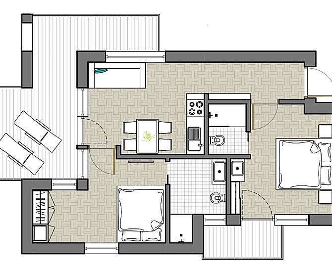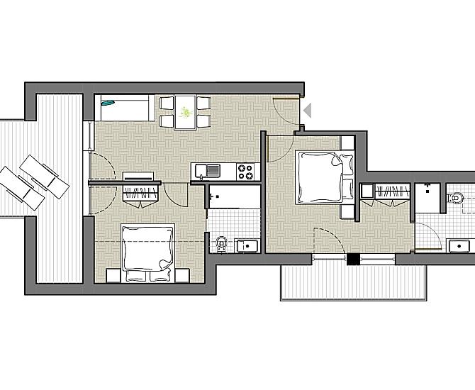 4 apartamenty: 2-4 osób, 2-5 osób, 2-6 osób