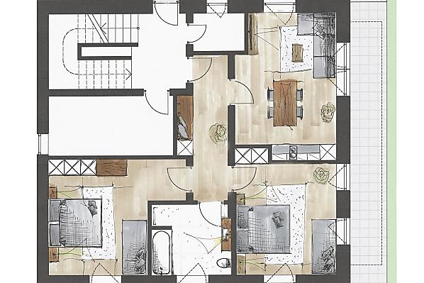 4-6 osób (4 stałych łóżek) 71m²
