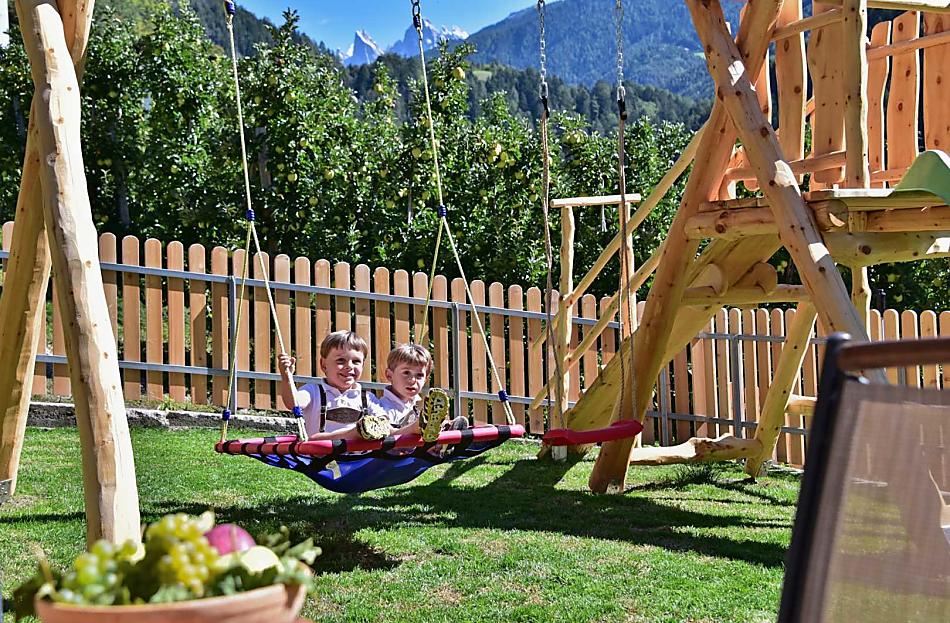 Spedzisz wakacje na tradycyjnym gospodarstwie owocowym w gminie Villnöss we frakcji Teis, na wysokosci 750 m n.p.m. Widok na sady i winnice oraz jasne wapienne szczyty Grupy Geislera to fantastyczne tlo podczas wakacji w gospodarstwie. Pensjonat Prackfiederhof jest polozony w poblizu Parku Przyrody Puez- Geisler, który wita Cie nieskazonymi regionami górskimi, zielonymi alpejskimi pastwiskami i rwacymi górskimi potokami. Na naszej farmie uprawiane sa rózne rodzaje owoców i wina. Sloneczne zbocza oferuja doskonale warunki do rozwoju typowych lokalnych odmian winorosli, takich jak Müller Thurgau, Kerner i Sylvaner. W hotelu Prackfiedererhof dostepne sa trzy mieszkania dla 2-6 osób. Na nalezacym do gospodarstwa placu zabaw ze zjezdzalnia, piaskownica, hustawka, trampolina, pilkarzykami i stolem do tenisa stolowego najmlodsi goscie moga sie wyszalec do woli. Na farmie mieszkaja tez zwierzeta domowe, takie jak dwa króliki, kot i kilka kurczaków.