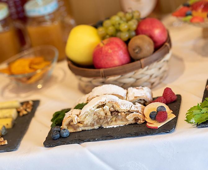 - Produkty z własnego gospodarstwa na śniadanie: jajka, dżemy, syrop, soki owocowe, suszone owoce, galaretki, chutney, herbaty ziołowe, pieczywo, świeże warzywa sezonowe, świeże owoce sezonowe