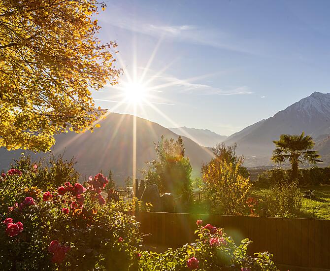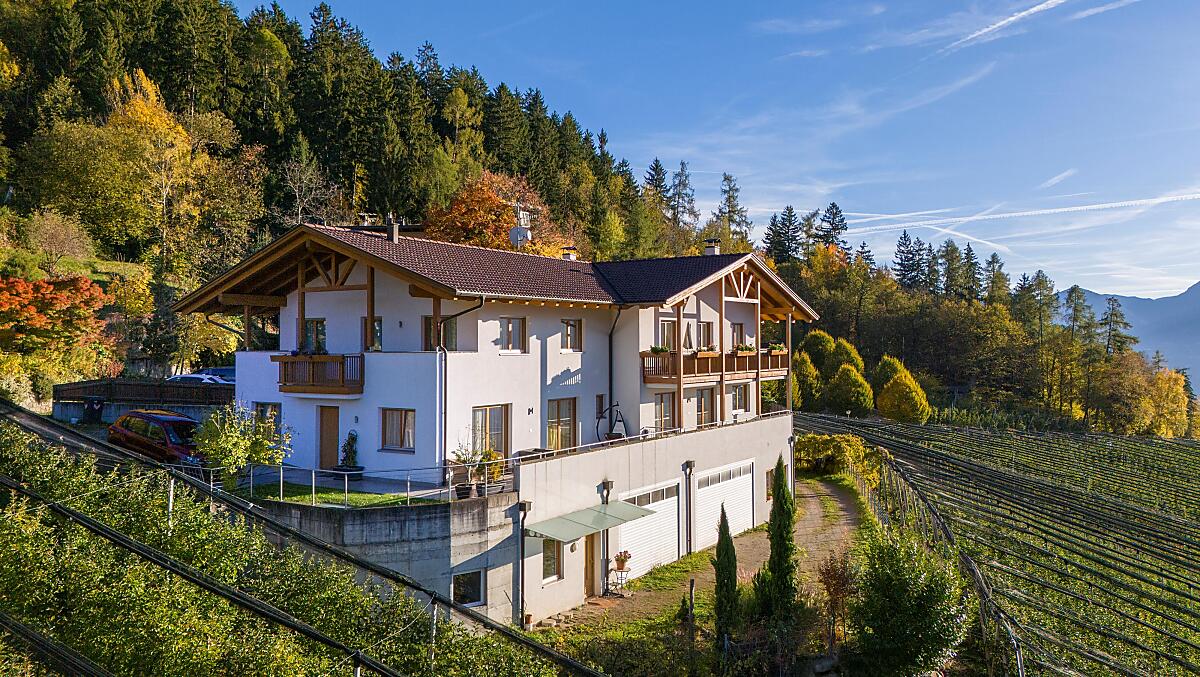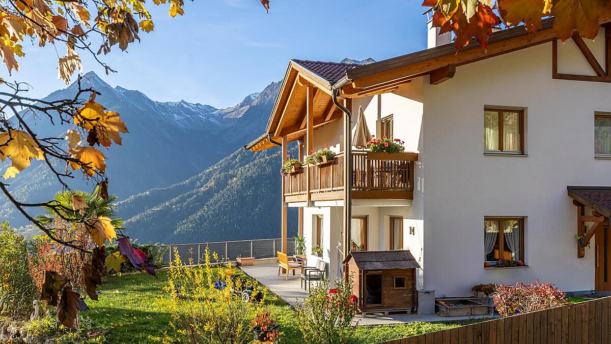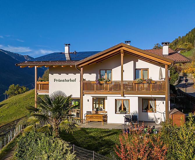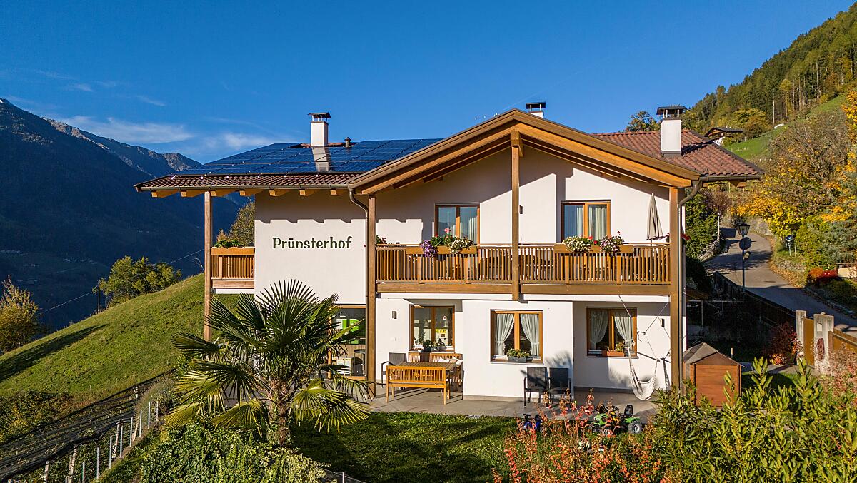Nowo wybudowany dom w Schenna, taras słoneczny Burggrafenamt. Nasze mieszkania wakacyjne położone są w cichej i słonecznej okolicy, pośród naszych własnych sadów jabłoniowych, z pięknym widokiem na Schennę, cały region Merano i okoliczne góry. Spokojna okolica i komfortowo urządzone mieszkania oferują wiele możliwości relaksu i powrotu do codziennego życia. Prünsterhof jest również dobrą bazą wypadową do pieszych wycieczek przez cały rok.