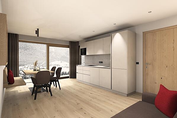 Nasze gospodarstwo położone jest w dogodnym miejscu, po słonecznej stronie, powyżej wioski, w przepięknej panoramie. Do wyciągów narciarskich i centrum miejscowości można dotrzeć w kilka minut pieszo, a lokalizacja stanowi idealny punkt wyjścia na wędrówki, wycieczki rowerowe i skitourowe. Przystanek ski- i city-busa znajduje się tuż przy gospodarstwie. Nowoczesne, starannie urządzone mieszkania wakacyjne oraz piękna łąka do wypoczynku zapraszają do relaksu. Stawiamy na zrównoważony rozwój i dlatego nasze mieszkania zasilane są energią odnawialną (fotowoltaika i pompa ciepła).