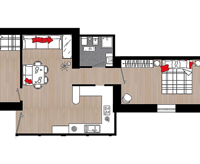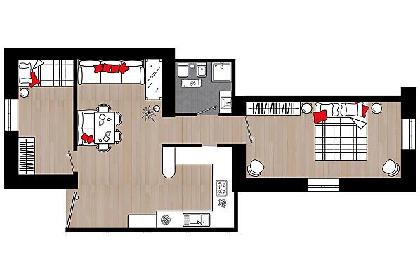 2-4 osób (3 stałych łóżek) 52m²