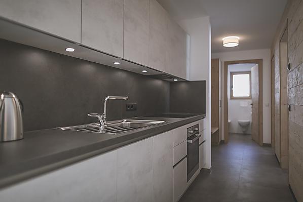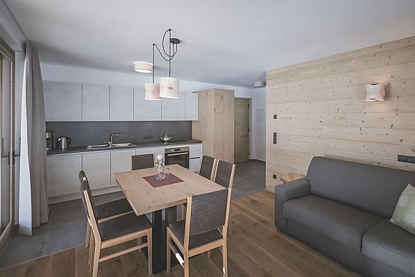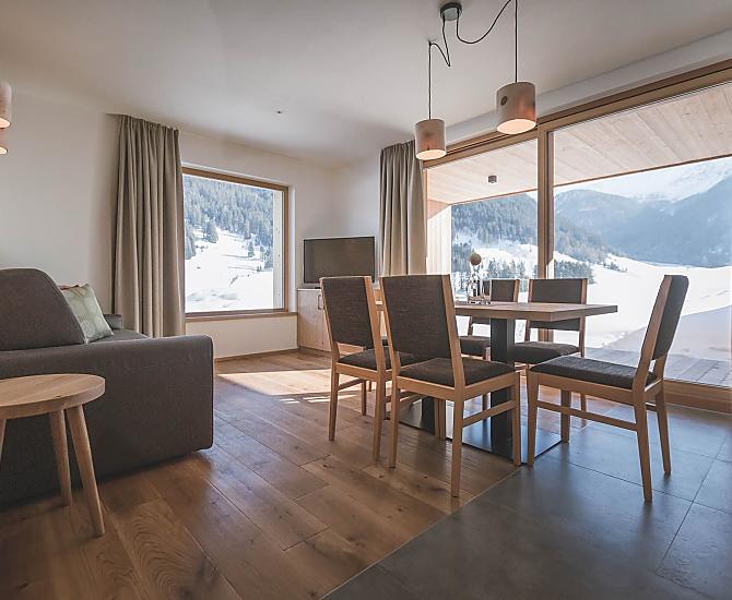 Wakacyjny apartament „Winter” („Zima”) posiada przytulna kuchnie polaczona z salonem oraz dwa balkony z zapierajacymi dech w piersiach widokami na doliny Unterpustertal i Ahrntal.