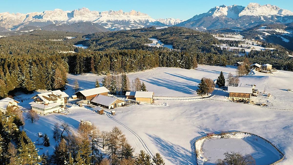 Znajdujemy sie z dala od glównej miejscowosci Deutschnofen, w spokojnym, odizolowanym miejscu. Spokój, slonce, dobre powietrze, panoramiczne widoki z Dolomitami w tle, wspaniala gra kolorów (kolorowe wiosenne laki i jesienne lasy), produkty z gospodarstw rolnych i poludniowotyrolska kuchnia wzbogacona o wloskie specjaly - to wlasnie oferujemy naszym gosciom!