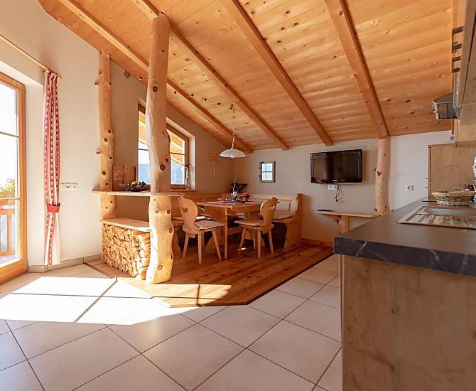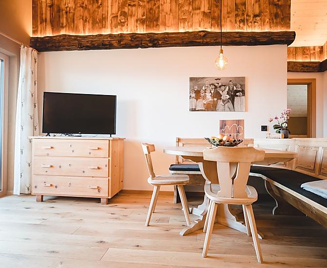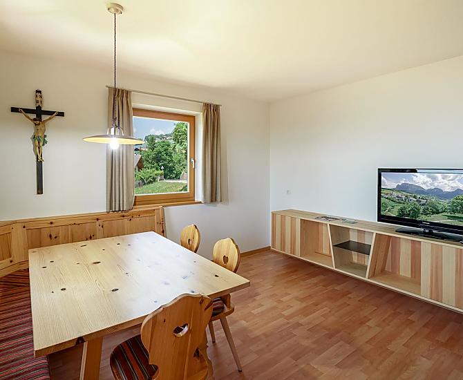 Idylliczne górskie gospodarstwo w niezapomnianym, panoramicznym miejscu. Nasze nowe, pieknie urzadzone mieszkania wakacyjne zapraszaja pary i rodziny do odpoczynku od stresu zycia codziennego. Duzy udzial drewna w wyposazeniu wnetrz daje poczucie przytulnosci i pozwala naladowac baterie. Nasze gospodarstwo jest polozone wsród lak i lasów. Z dala od glównego zgielku, ale w centrum miasta, znajdziesz u nas doskonala baze wypadowa do róznych dzialan. Aktywne wakacje, odkrywanie kultury i tradycji Poludniowego Tyrolu lub relaksujacy wypoczynek - to wszystko jest mozliwe z nami. Dzieki przystankowi autobusowemu znajdujacemu sie bezposrednio przed domem mozesz bez obaw zwiedzac okolice. Völser Weiher (naturalny staw) to idealne miejsce do schlodzenia sie w gorace letnie dni lub do jazdy na lyzwach w zimie.