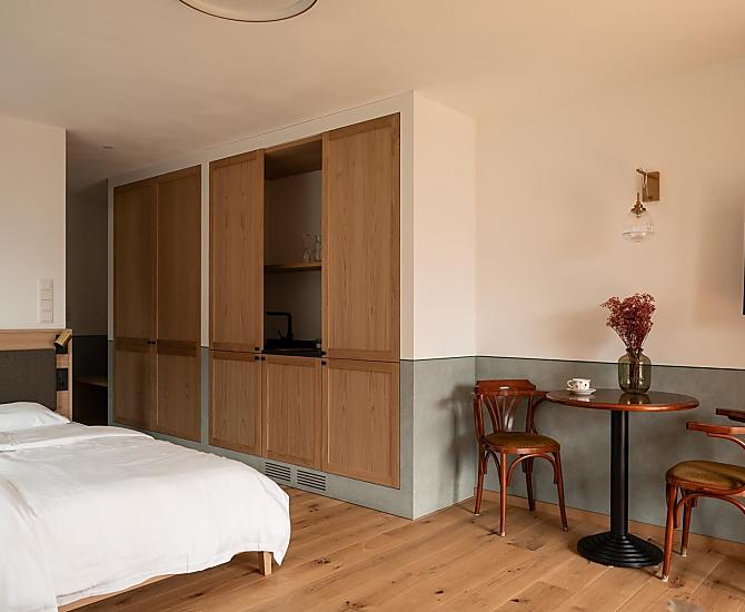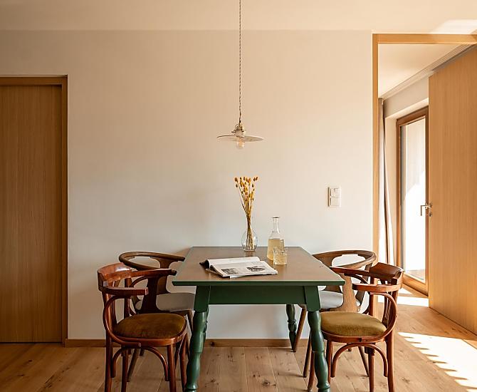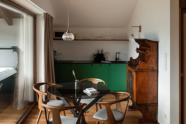 Nowe otwarcie w lipcu 2024! Nasze gospodarstwo znajduje się w chronionej kulturowo i krajobrazowo wiosce Antlas na wysokości 800 metrów nad poziomem morza, z zapierającym dech w piersiach widokiem na Dolomity oraz na historycznie ważny kościół św. Andrzeja, w którym można podziwiać imponujące freski. Nasze cztery apartamenty typu studio znajdują się w nowo wybudowanym budynku, który bezpośrednio przylega do zabytkowego gospodarstwa. W ogrodzie znajduje się naturalny basen i wanna z hydromasażem dla naszych gości. Pokoje zostały wyposażone w meble wykonane przez stolarza, częściowo z drewna z naszego własnego lasu. Wystrój to mieszanka południowotyrolskiej wiejskiej izby i alpejskiej secesji, często spotykanej na Ritten. Dwa razy w tygodniu otwieramy naszą kuchnię, aby przybliżyć naszym gościom kuchnię południowotyrolską. Wszystkie apartamenty posiadają zaplecze kuchenne, a apartament rodzinny i penthouse mają w pełni wyposażoną kuchnię.