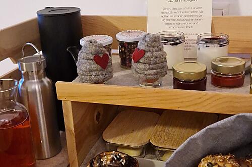 - Produkty z własnego gospodarstwa na śniadanie: mleka, speck, miód, dżemy, syrop, przyprawy ziołowe, chleb, pieczywo