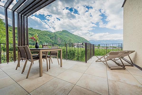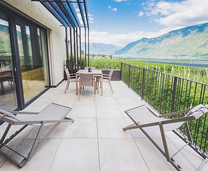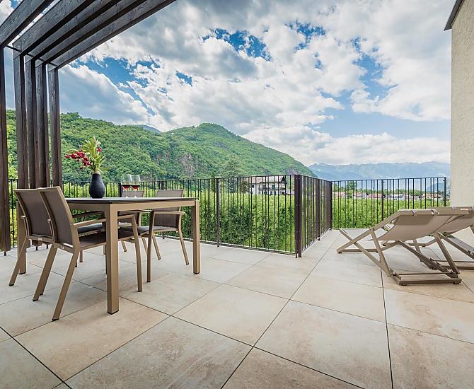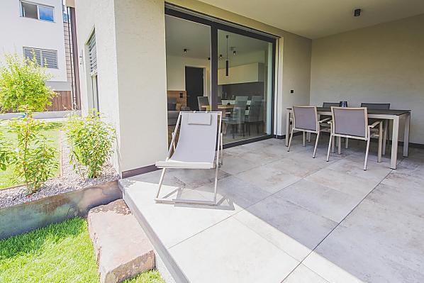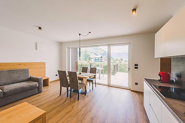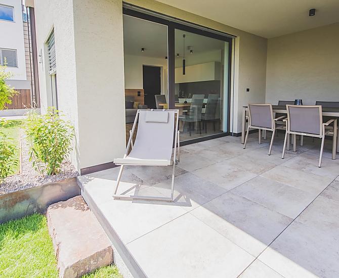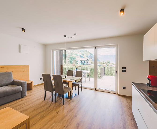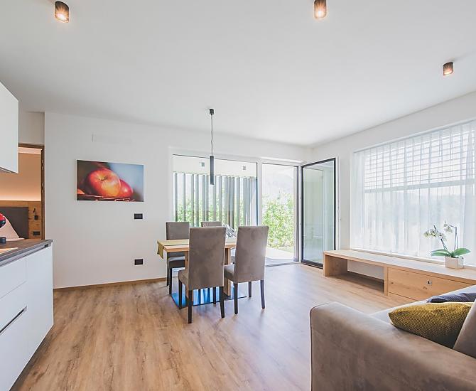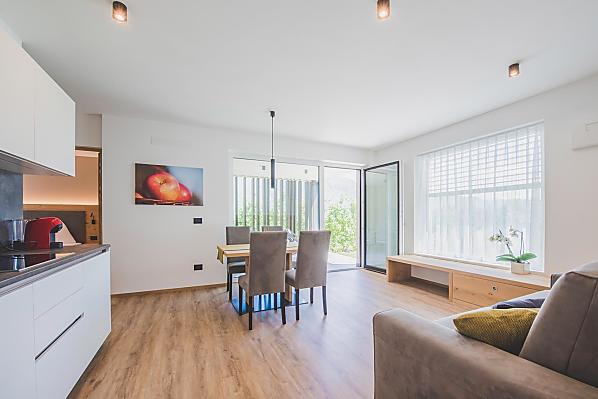 Ciesz sie na wakacje w srodku naszych sadów, w bardzo spokojnym, ale centralnym miejscu. Nasze mieszkania wakacyjne sa nowoczesne i stylowo urzadzone, z wykorzystaniem wielu naturalnych materialów i harmonijnych kolorów. Duze przeszklenia wabia nature do wnetrza pomieszczenia i daja szczególne poczucie wolnosci. Kazde mieszkanie ma swój przestronny taras z miejscami do siedzenia i lezakami, na którym mozna zakonczyc wakacyjny dzien w balsamiczne letnie wieczory.