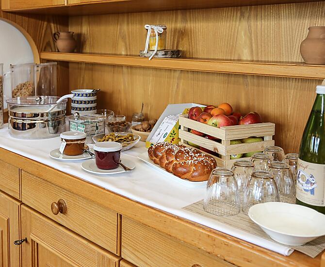 - Produkty z własnego gospodarstwa na śniadanie: jajka, dżemy, syrop, soki owocowe, suszone owoce, herbaty ziołowe, przyprawy ziołowe, świeże warzywa sezonowe, świeże owoce sezonowe