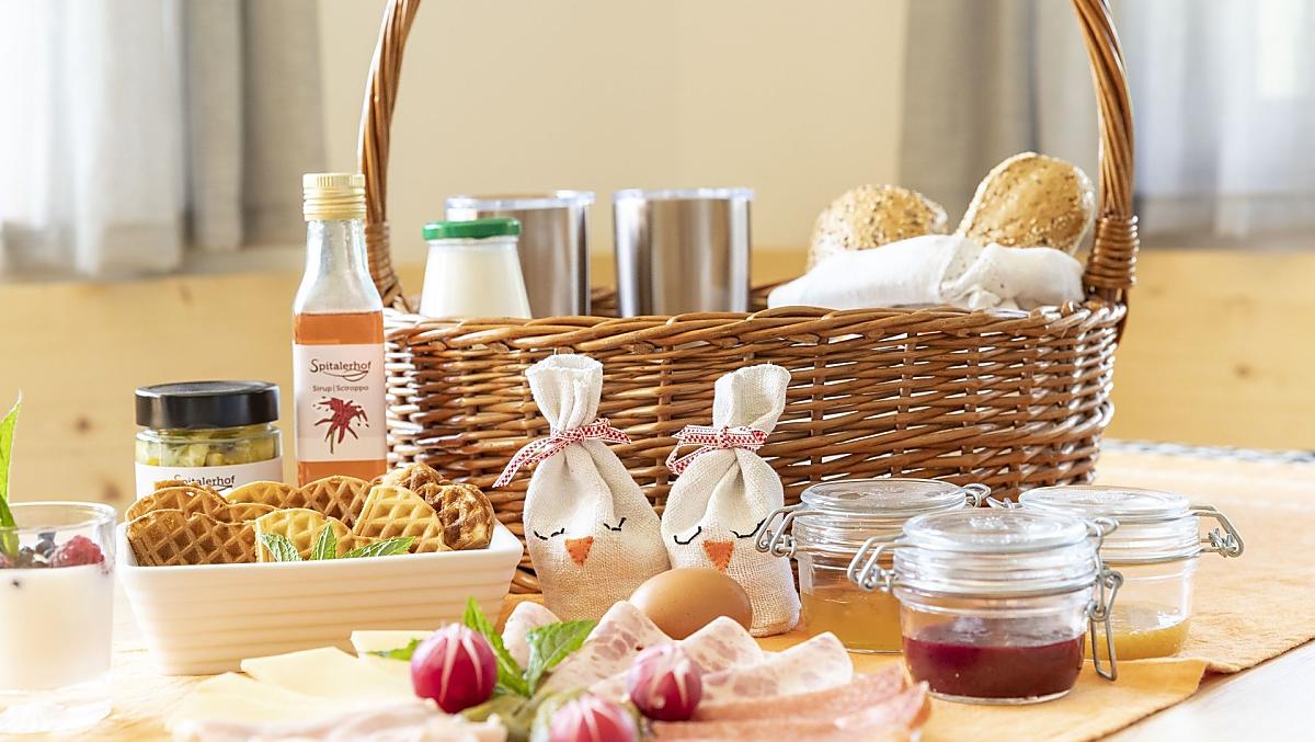 - Produkty z własnego gospodarstwa na śniadanie: jajka, dżemy, syrop, suszone owoce, galaretki, przetwory, herbaty ziołowe, zboża, pieczywo, świeże warzywa sezonowe, świeże owoce sezonowe