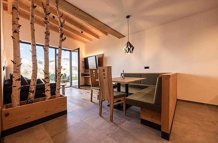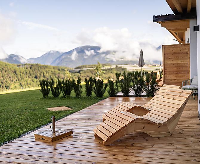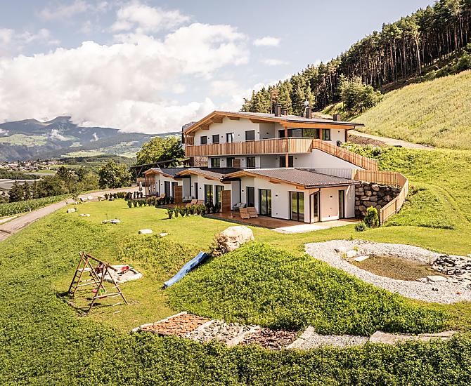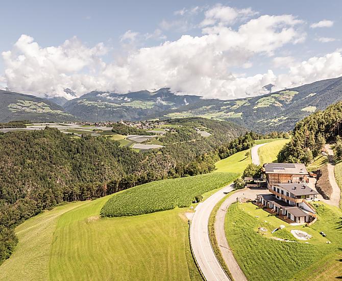 Nasze gospodarstwo położone jest powyżej Brixen, na wzgórzu Ploseberg, na wysokości 880 m n.p.m. Otaczają nas łąki i lasy, które zachęcają do relaksu. Z domków letniskowych rozciąga się wspaniały widok na góry i dolinę. Szczególnie wieczorem, o zachodzie słońca, góry prezentują się z najlepszej strony. W naszych domkach i apartamentach wakacyjnych po wędrówce można zapomnieć o codzienności w saunie na podczerwień. Dzieci mogą wyszaleć się na naszym leśnym placu zabaw i poznać codzienne życie na farmie.