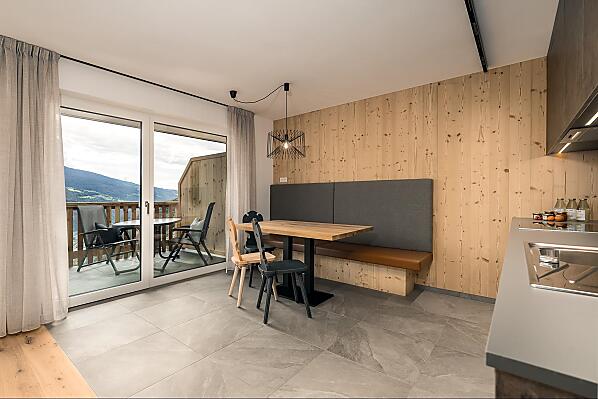 Nasze cztery przestronne apartamenty wakacyjne zachwycają komfortowym i nowoczesnym wyposażeniem, przytulną drewnianą podłogą, a szczególnie ogromnymi przeszkleniami od strony południowej, dzięki czemu nasi goście nie mają żadnych życzeń, a wakacje stają się czystą przyjemnością.