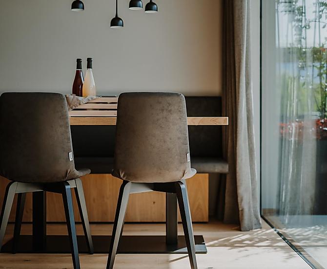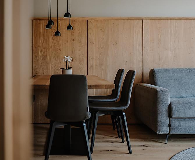 Nasze trzy piękne apartamenty wakacyjne są zbudowane w sposób zrównoważony z wysokiej jakości naturalnych materiałów, od podłogi do sufitu. Bezramowe fronty okienne pozwalają na płynne połączenie wnętrza z zewnętrzem, a prywatny taras zapewnia bezpośredni dostęp do dużego ogrodu. Wszystkie apartamenty zostały urządzone z dużą ilością drewna i dbałością o szczegóły. Zapraszamy!
