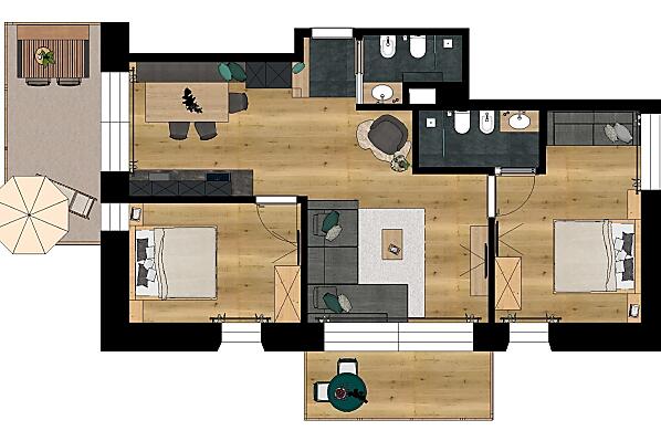 4-7 osób (5 stałych łóżek) 85m²