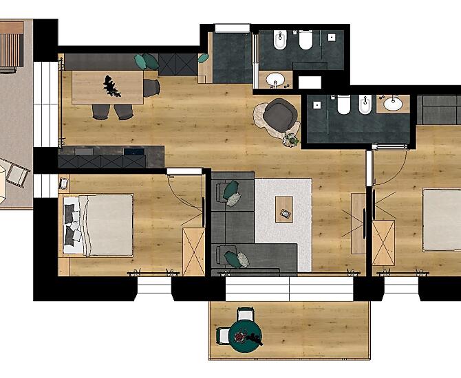4-6 osób (4 stałych łóżek) 80m²