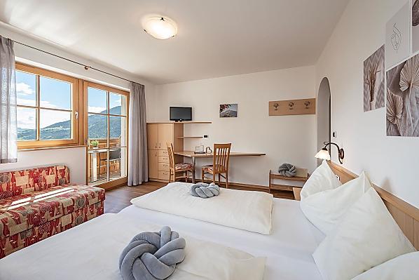 Nasze rodzinne gospodarstwo owocowo-winiarskie znajduje sie w przepieknym miejscu na koncu wsi Raas. W otoczeniu winnic i sadów jabloniowych znajdziesz relaks i spokój, z pieknym widokiem na doline Brixen. Na naszym duzym tarasie slonecznym mozesz sie zrelaksowac, podziwiajac widoki i spokój, podczas gdy dzieci moga sie wyszalec na pieknym placu zabaw. W naszym gospodarstwie znajduja sie duze, nowo wyremontowane pokoje oraz mieszkanie wakacyjne. Nasze bogate sniadanie w formie bufetu z wieloma domowymi przysmakami to idealny poczatek dnia. W naszym Buschenschank mozesz skosztowac pysznych domowych specjalów z Poludniowego Tyrolu i dan sezonowych. Jesienia proponujemy tradycyjne Törggelen z naszym swiezo podpiwniczonym winem i typowymi potrawami. Nasze gospodarstwo jest idealna baza wypadowa do wycieczek pieszych i calodniowych, a bezposredni przystanek autobusowy znajduje sie przed domem.