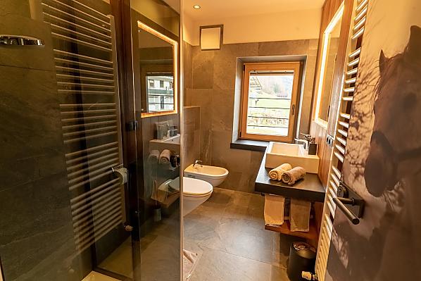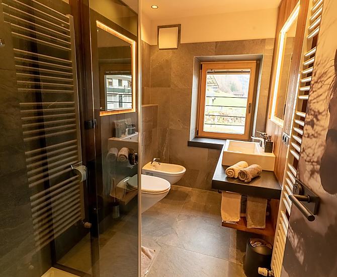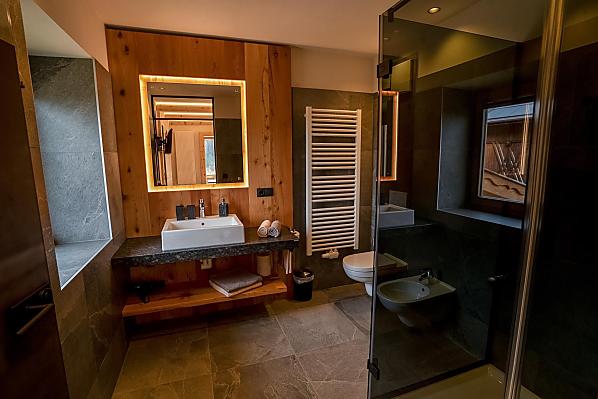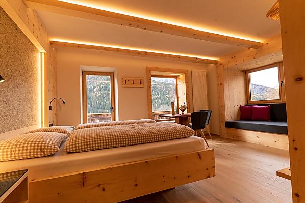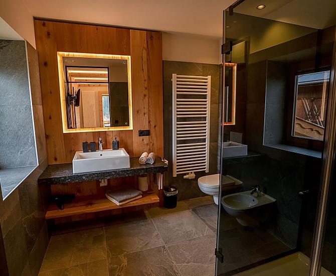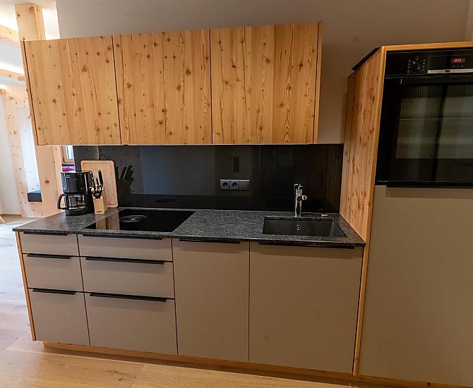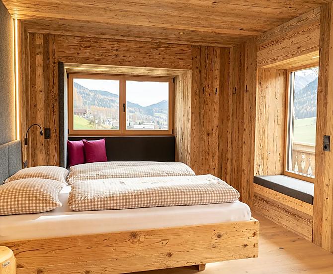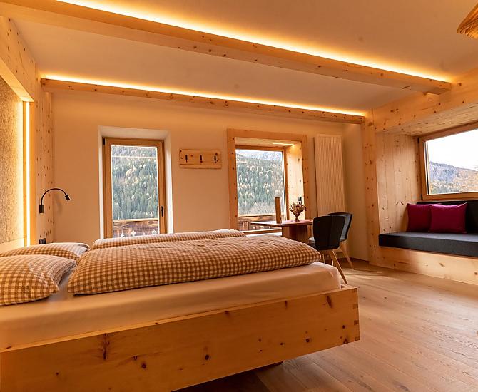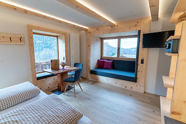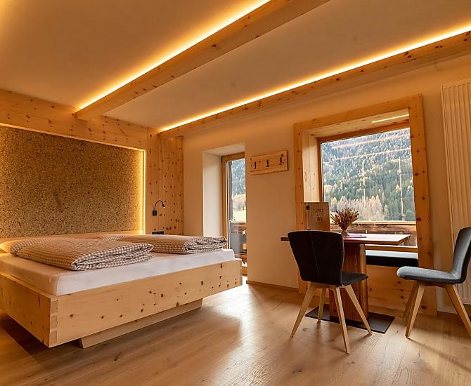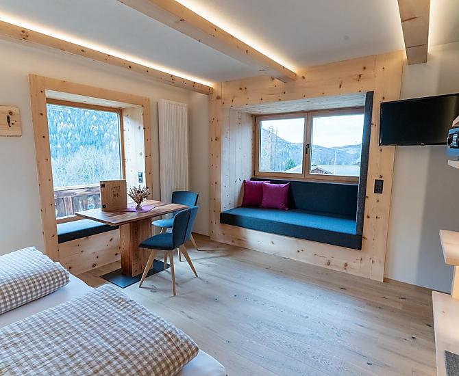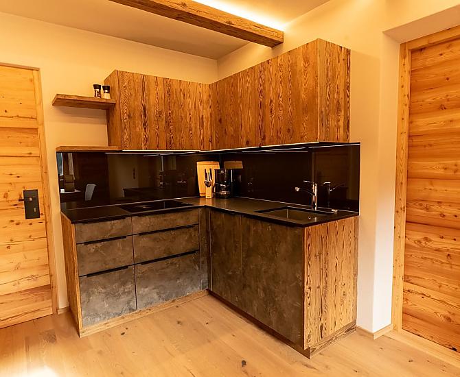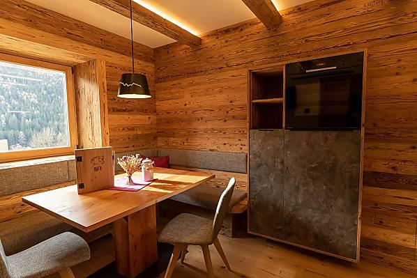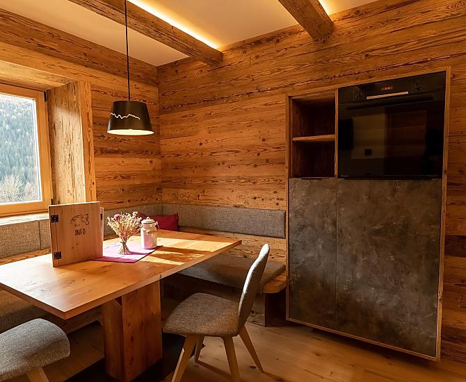 Możesz cieszyć się nie tylko wschodem słońca lub migotaniem alp z panoramicznego okna naszych przytulnych i stylowych apartamentów, ale także wygodą i zrównoważeniem, jakie zapewniają lokalne materiały, którymi zostały wyposażone. Twój dom na wakacje urządzony z meblami z naturalnego drewna.